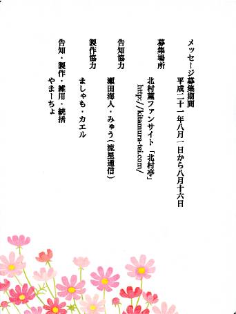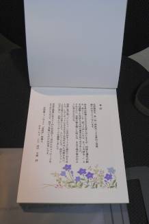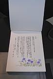 応募数が予想を下回ったのと、旅行に行ったりして予想より作業時間が取れなかったため、製本したりせず、アルバムを転用してメッセージを掲載することにしました。利用したのは和綴じアルバム S (花浅葱 野菊の唐草) です。